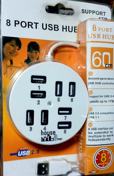 Ce hub USB compact à 8 ports est idéal pour connecter et organiser vos périphériques. Compatible USB 2.0, il prend en charge jusqu'à 1 To. Parfait pour la maison ou le bureau.