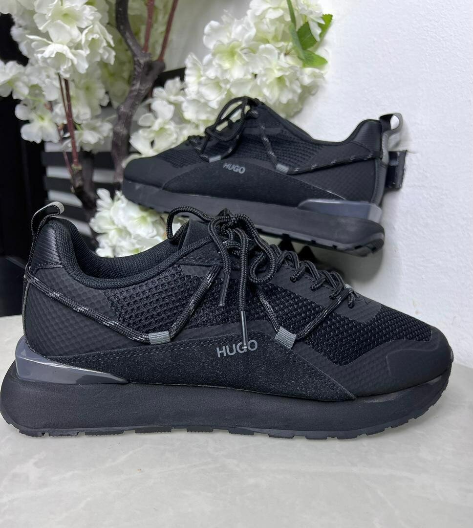 Découvrez le confort et le style des baskets Hugo en tissu noir. Idéales pour un usage quotidien, elles offrent un design moderne et élégant. Parfaites pour compléter un look urbain ou sportif.