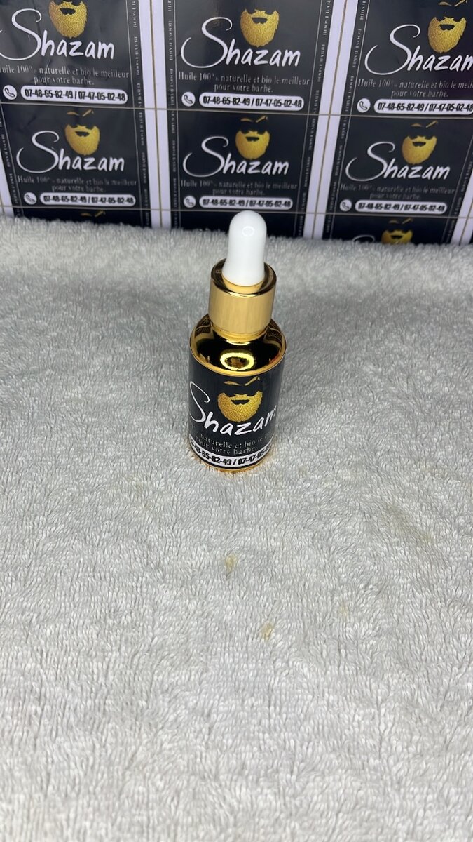 Shazam est Une huile essentielle composée de plusieurs huiles et de plantes naturelles qui favorise la pousse de la barbe et des cheveux . Notre huile ramolli, hydrate ,noircit ,et développe intensivement la barbe et les cheveux. S'applique matin et soir.