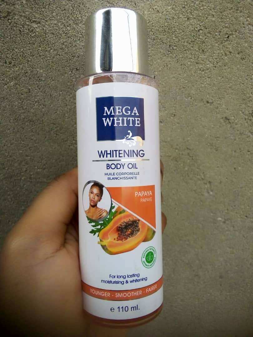 Découvrez l'Huile Corporelle Mega White pour une peau plus jeune et plus lisse. Enrichie à la carotte, papaye ou citron, elle hydrate intensément et offre une action pour un teint uniforme et éclatant. Idéale pour une utilisation quotidienne, elle adoucit et revitalise votre peau.