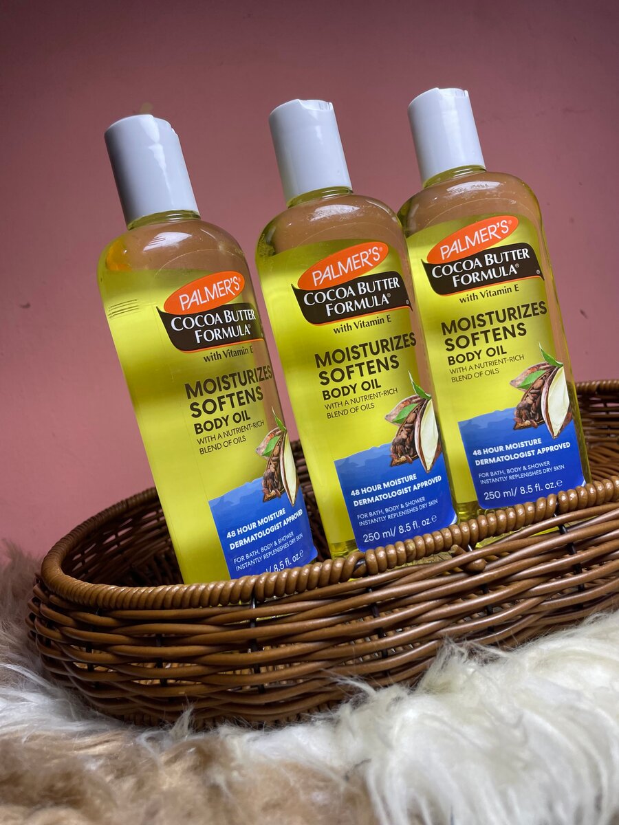 l'huile corps à base de beurre de cacao et vitamine E de Palmer's, parfaite pour une peau douce et hydratée.