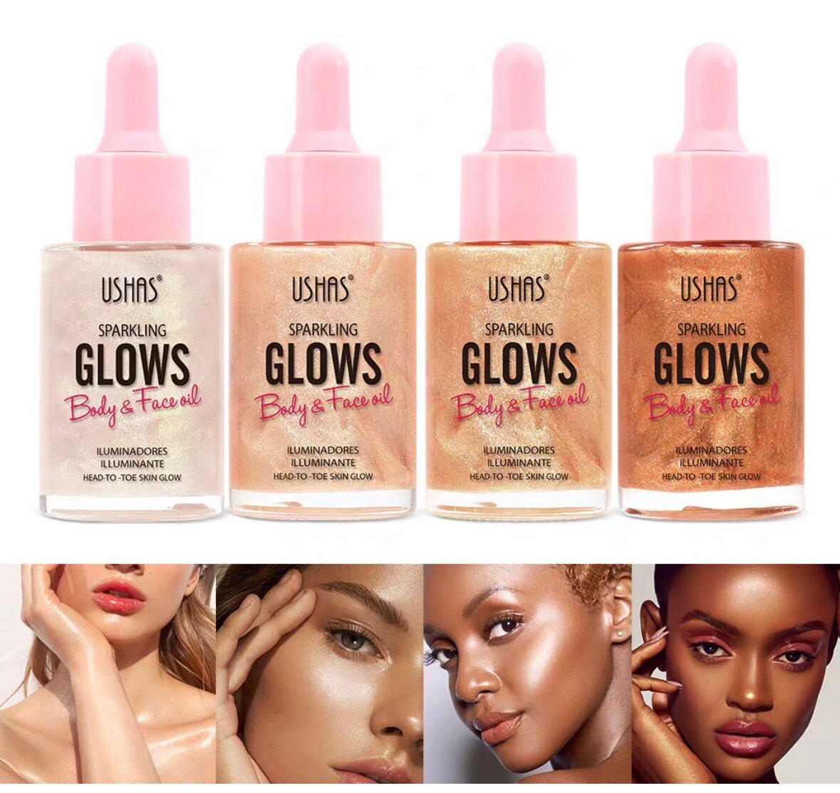 Découvrez l'huile de corps USHA'S Sparkling Glows pour un éclat irrésistible. Convient pour le visage et le corps, cette huile illuminatrice hydrate et sublime votre peau. Disponible en plusieurs teintes pour toutes les carnations.