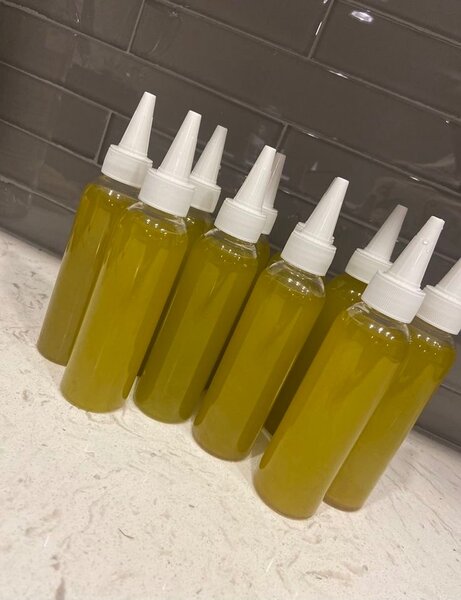 Huile bio, favorisant la pousse des cheveux,les fortifie et empêche leur chute.