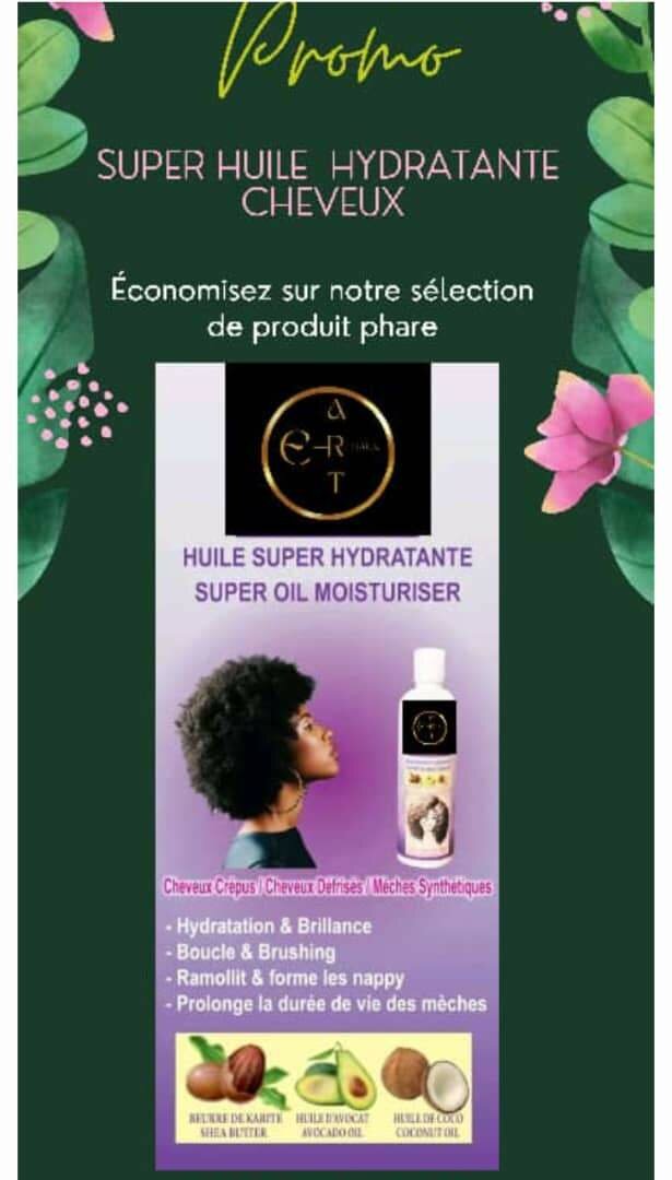 Offrez à vos cheveux une hydratation intense et une brillance éclatante avec notre huile super hydratante. Parfaite pour boucles et brushing, elle adoucit et forme les cheveux nappy tout en prolongeant la durée de vie des mèches. Idéale pour cheveux crépus, défrisés et mèches synthétiques.