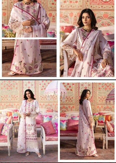 *Husn E jahan* By *. *mahnur* Embroidered lawn Chikan cari full havey embroidery collection 3piece