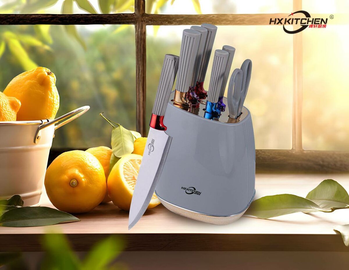 HIGH QUALITY KNIFE SET AND SCISSOR WITH STAND FOUR COLOURS AVAILABLE