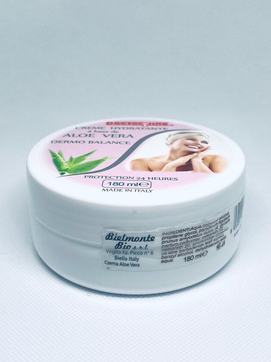 Découvrez l'hydratation intense avec l'Aloe Vera Dermo Balance. Formulé en Italie, ce soin apaise et protège votre peau pendant 24 heures. Idéal pour une peau douce et équilibrée, parfait pour un usage quotidien.