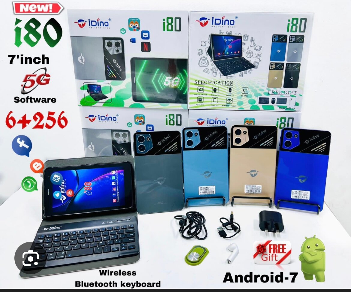 Discover the compact power of the iDino i80 Tablet with Android 7.0. Featuring a 7-inch display, 64GB storage, 256GB expansion, and 5G connectivity. Includes wireless Bluetooth keyboard for seamless typing. Ideal for on-the-go productivity.