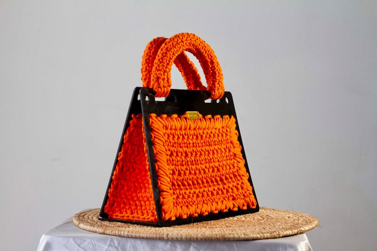 Sac confectionné avec la laine coton , et une base teintée acrylique