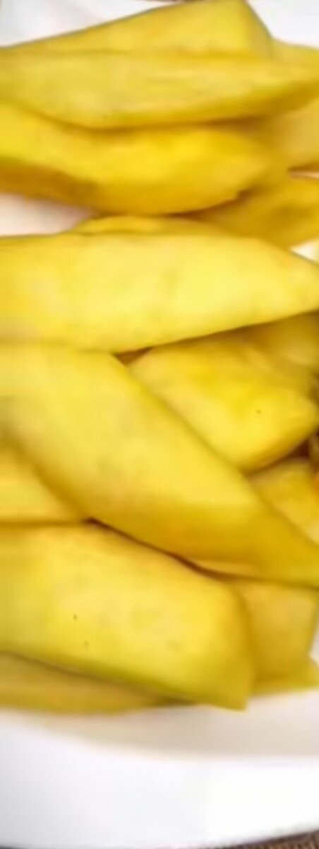 Frite d'igname kponan bien doré. Moelleuse a l'intérieur et croquante a l'extérieur