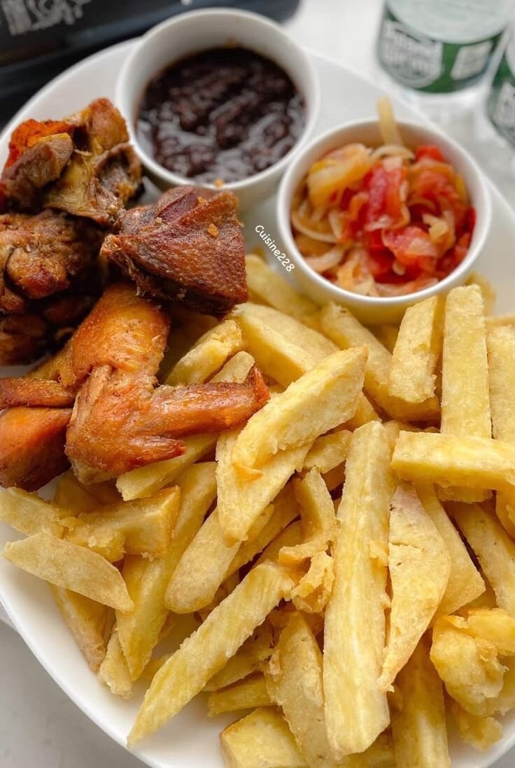 Frites d'ignames avec poulet