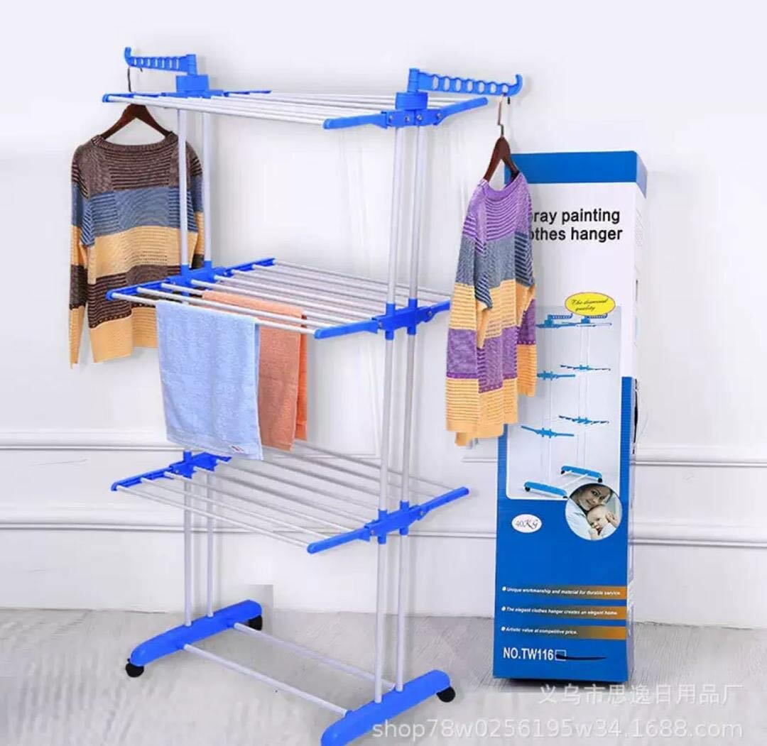 3 Tier Layers Foldable Dry Line Floor-Standing Extendable Space Saving Clothes Organizer