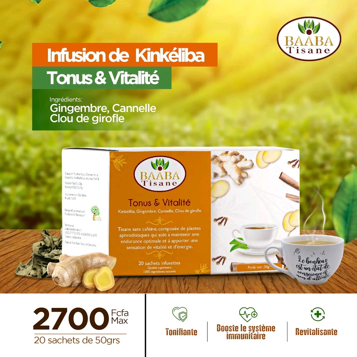 Revitalisez votre journée avec l'infusion Kinkéliba Tonus de BAABA Tisane. Enrichie en gingembre, cannelle et clou de girofle, cette boisson est Idéale pour ceux qui veulent un coup de boost naturel et sain. Parfait pour les sportifs.