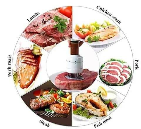 Améliorez l'arôme et la saveur de vos viandes avec cet injecteur de sauces multifonction. Idéal pour les steaks, poulet, poissons et plus, il assaisonne uniformément grâce à ses becs réglables. Facile à utiliser et à nettoyer, c'est un outil essentiel pour tout amateur de cuisine.