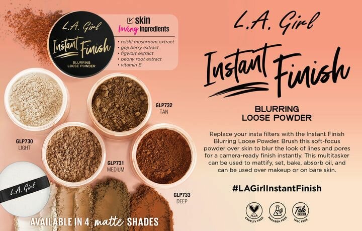 Replace your insta filters with The Instant Finish Loose Powder. Brush this soft powder over skin to blur the look of lines and pores.