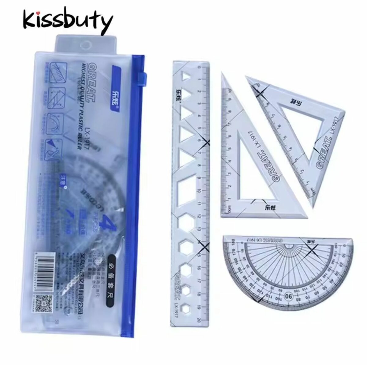 Règle de dessin 4 pièces/ensemble, mesure de la géométrie, Triangle, rapporteur, règles variétés, papeterie scolaire et de bureau
