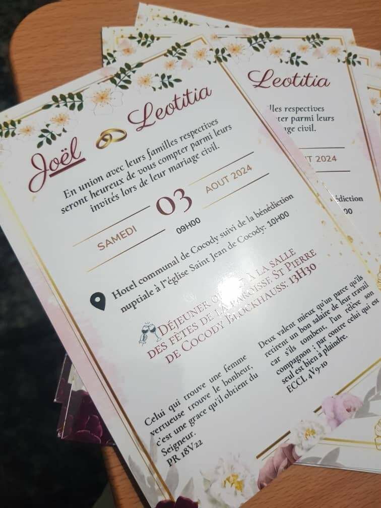 Découvrez nos invitations de mariage personnalisées, parfaites pour annoncer votre union avec style. Chaque invitation est conçue avec des motifs floraux élégants et des détails artistiques qui captiveront vos invités. Un choix idéal pour célébrer votre journée spéciale avec raffinement et élégance.