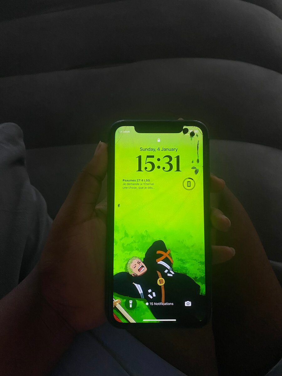iPhone 11 64go en forme, écran légèrement fissuré
