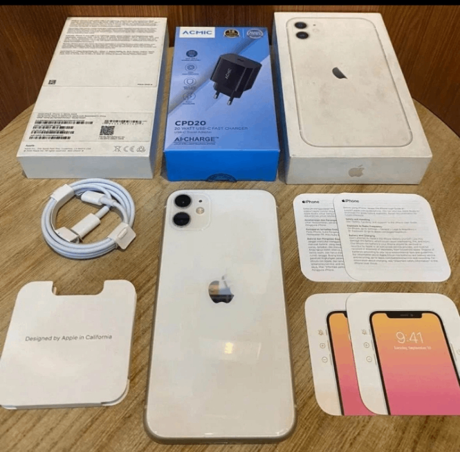 Découvrez l'iPhone 11 livré avec ses accessoires d'origine, idéal pour une connectivité sans faille. Comprenant un chargeur rapide, un câble de chargement robuste et une présentation élégante, cet ensemble est parfait pour une utilisation quotidienne performante. Votre compagnon tech de confiance !