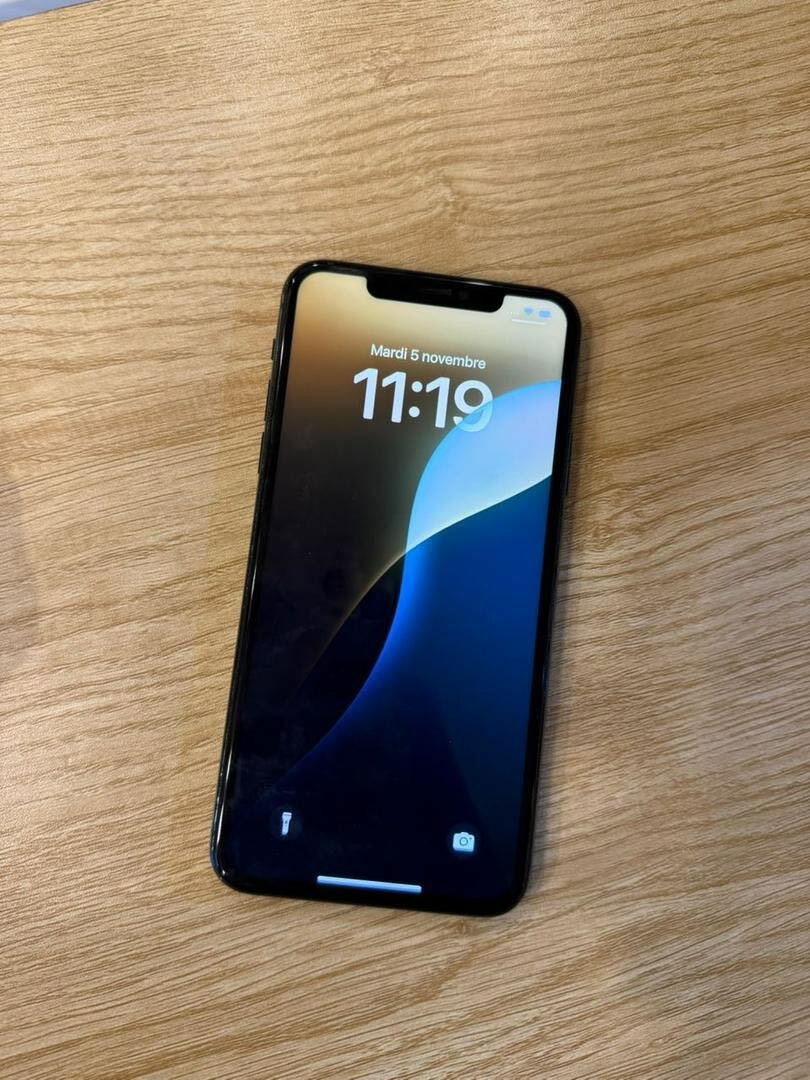 *Produit :* iPhone 11 Pro Max *couleur:* noir -blanc *stockage :*256giga *capacité de batterie :96% *défaut :*aucun nb: Le Telephone Est Super Propre