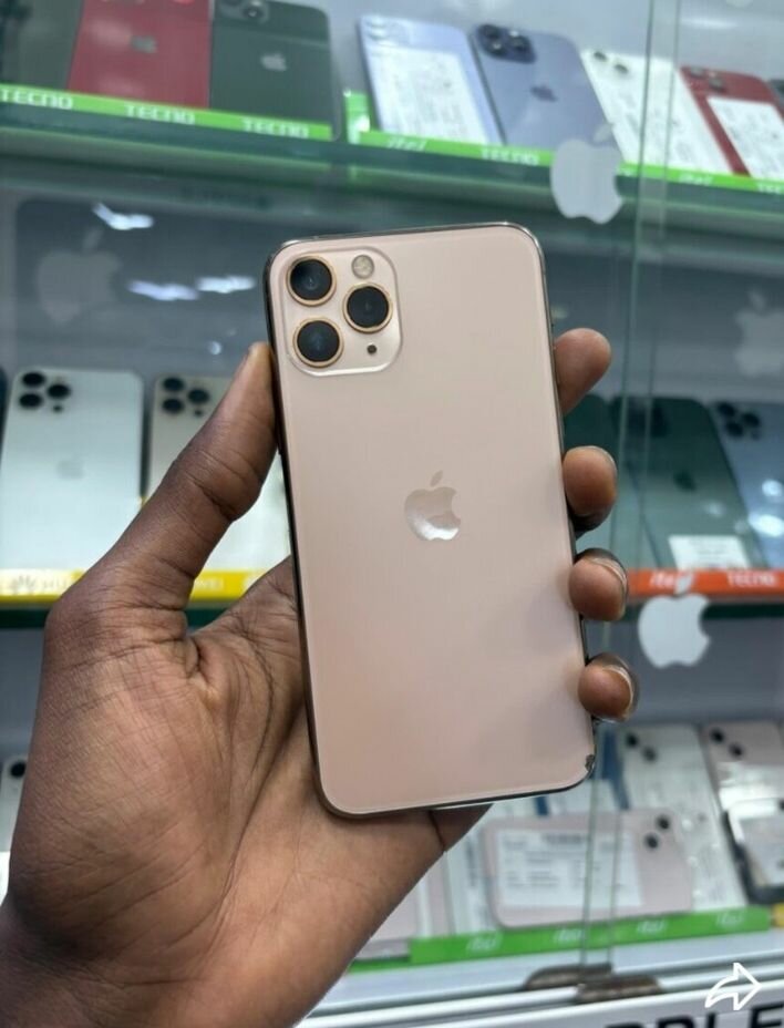 Découvrez l'iPhone 11 Pro Max en doré, un smartphone haut de gamme avec trois caméras pour des photos exceptionnelles. Profitez de la qualité Apple pour rester connecté avec style.
