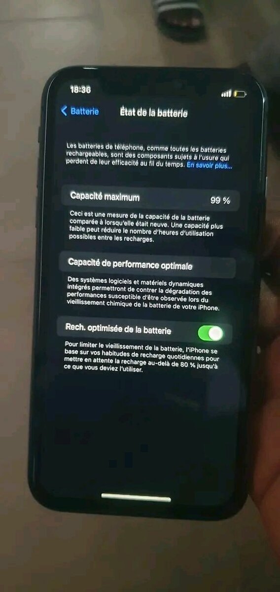 Découvrez l'iPhone 11 Pro Max Or, offrant une performance fluide et une capacité maximale de batterie à 99%. Idéal pour photo, vidéo et utilisation quotidienne.