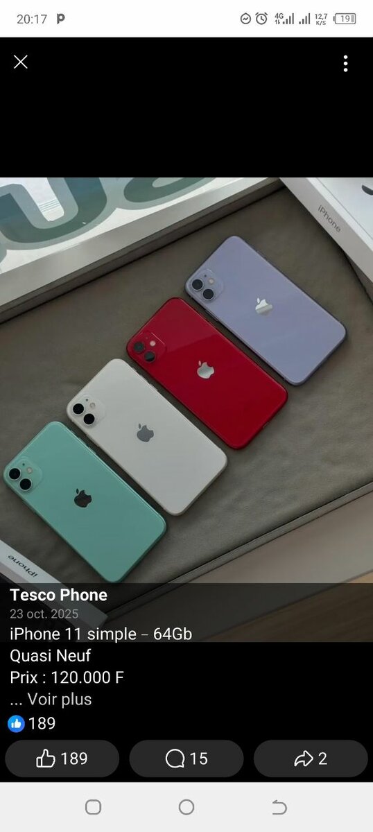 iPhone 11 simple 64Go Neuf, plusieurs couleurs disponibles. État impeccable, livraison rapide.