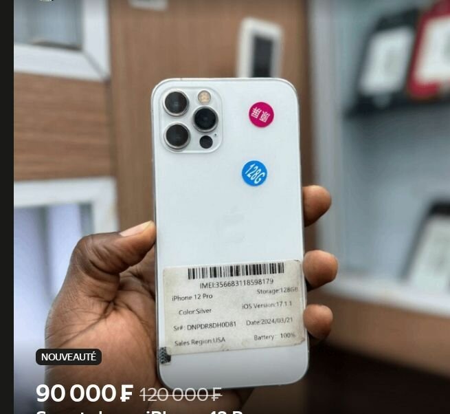 iPhone 12 Pro reconditionné disponible en 128Go, couleur argent. 100% batterie, version iOS 17.1.1. Un choix idéal pour ceux qui cherchent une qualité premium à prix réduit.