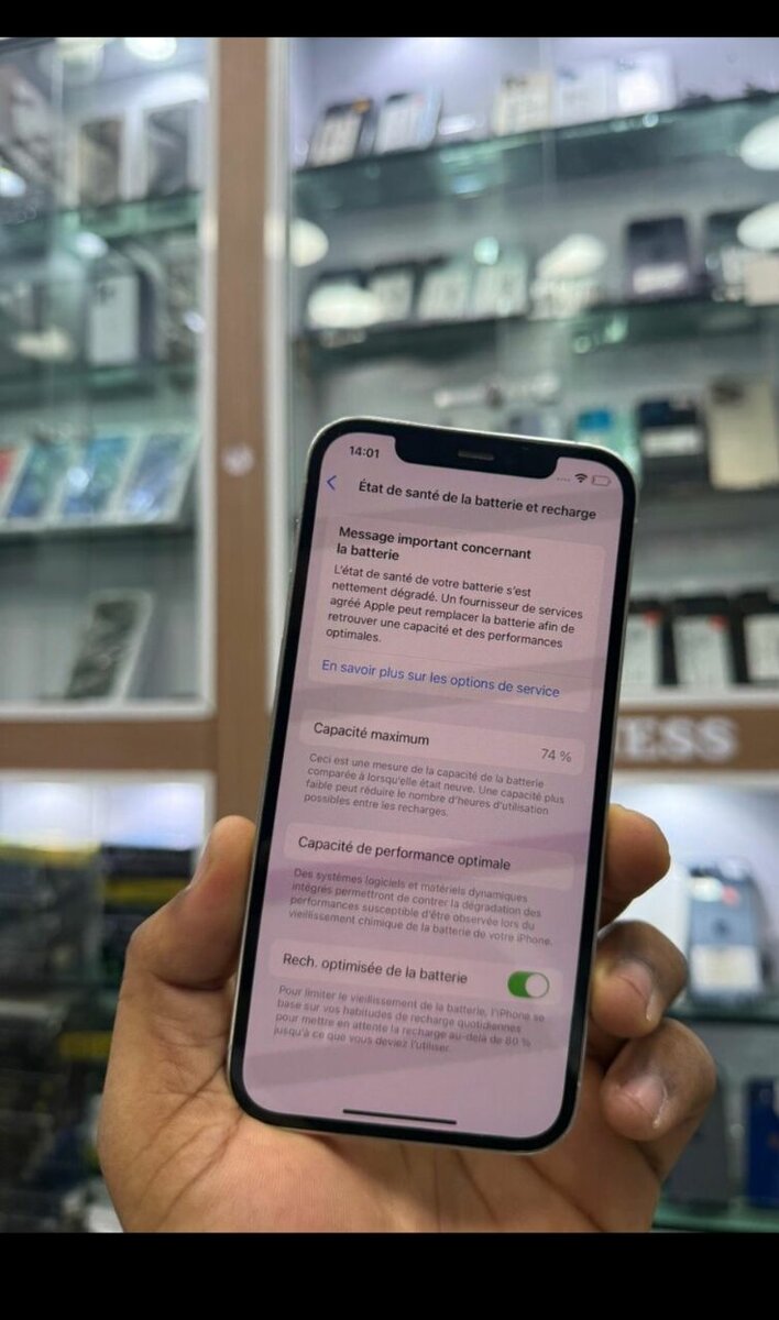 iPhone 12 Pro en excellent état avec batterie optimisée. Idéal pour ceux qui recherchent performance et élégance.