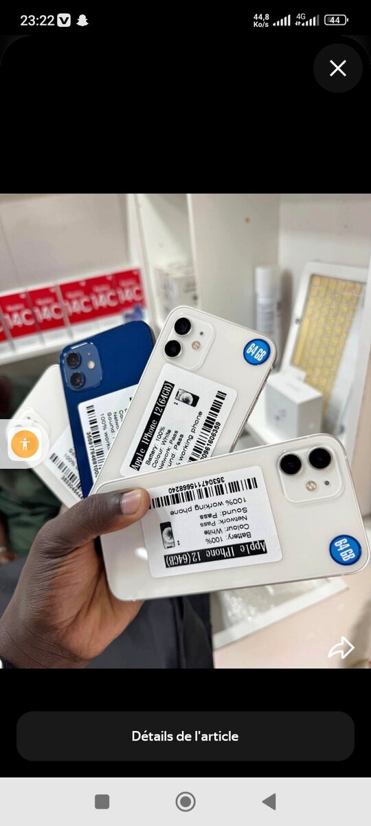 Découvrez l'iPhone 12, un smartphone haut de gamme offrant une expérience utilisateur exceptionnelle avec des performances rapides et un design élégant. Idéal pour ceux qui recherchent la qualité et l'innovation technologique. Parfait pour capturer des souvenirs, rester connecté et profiter des dernières applications. Disponible en plusieurs couleurs.