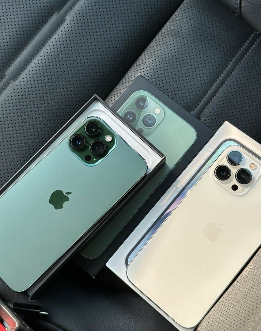 Almost New iPhone 13 Pro Max 128 GB Factory Unlocked BH 95% Silver Color Box with charger Factory Unlocked BH 93% Alpine Green color