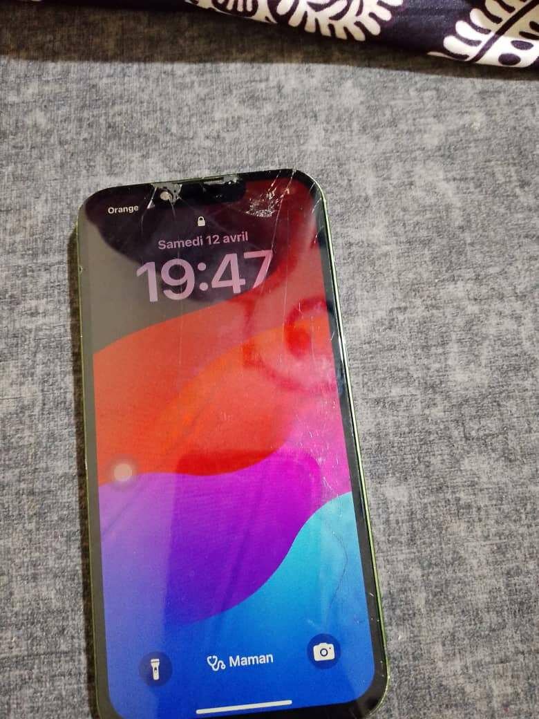 Iphone 13 simple 128 giga de stockage sans ID Écran touché mais tout passe