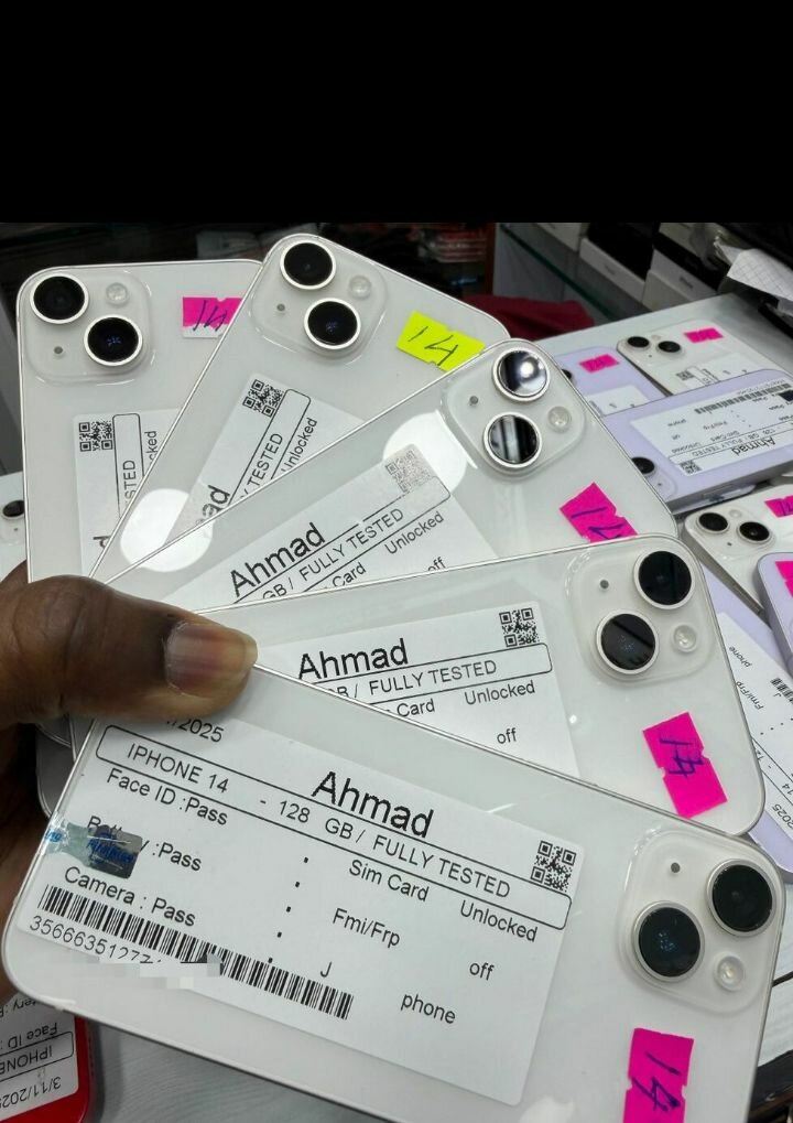 iPhone 14 débloqué, 128 Go, entièrement testé et fonctionnel. Face ID, caméra et empreinte fonctionnent parfaitement. Idéal pour ceux cherchant une solution mobile fiable.