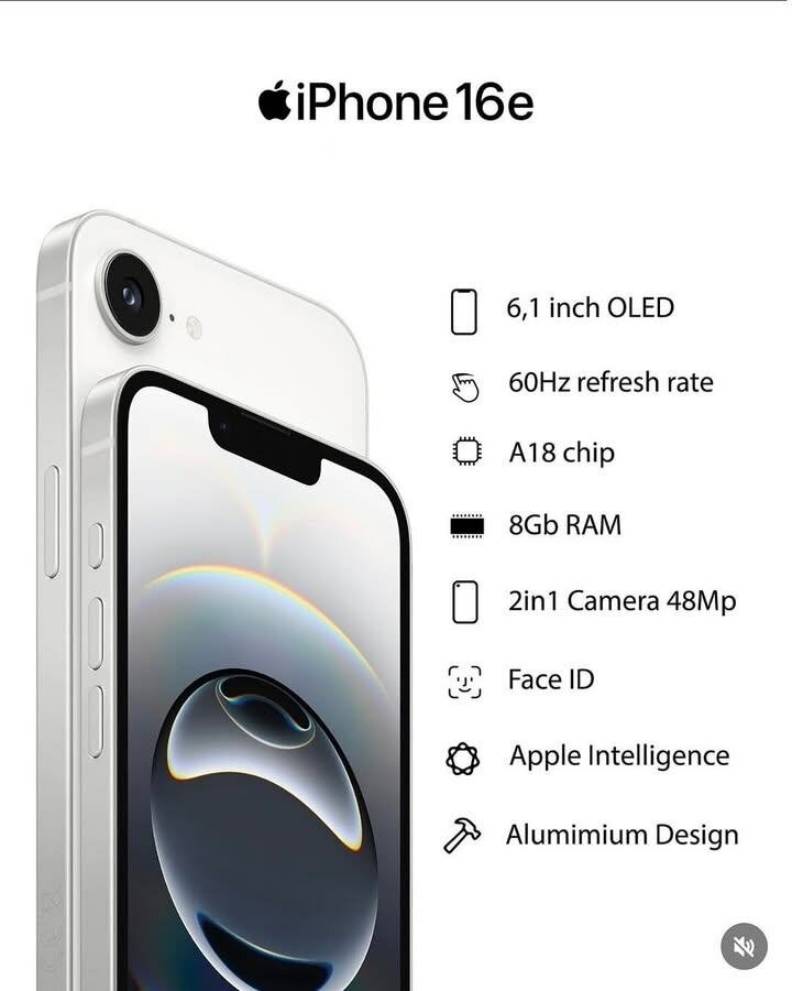 Type de produit : Smartphone Modèle : IPhone 16e 8Go de Ram 128Go de Stockage Dual Sim Appareil photo : 48 Mpx + 12 Mpx Selfie : 12 Mpx Os : iOS 18 Batterie : 4005mAh