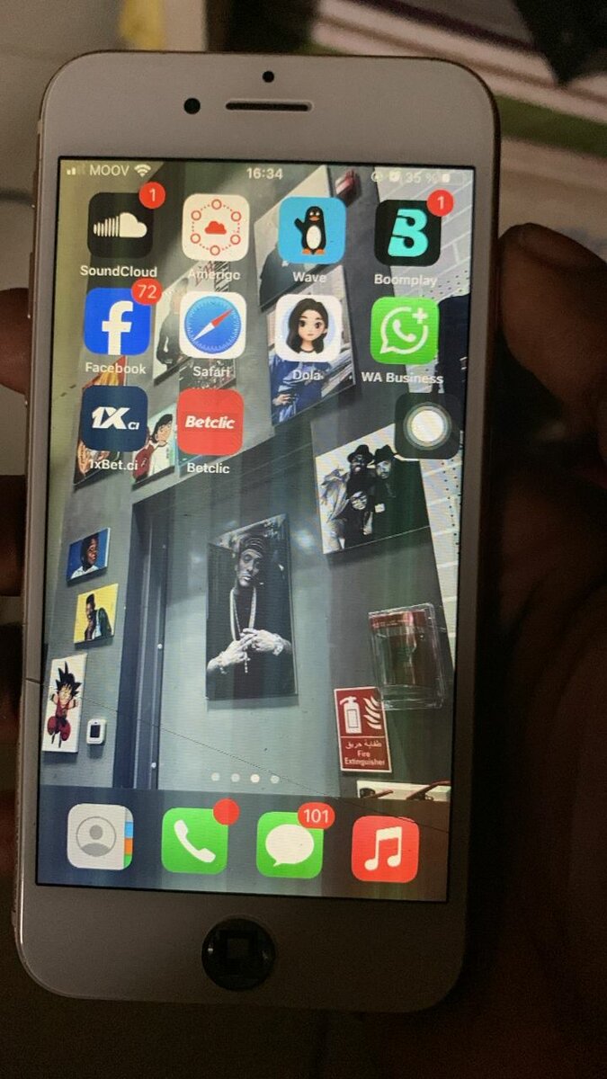 iPhone avec écran et dos fissurés, idéal pour pièces détachées ou réparation. Fonctionne encore, parfait pour ceux qui cherchent un projet à remettre en état ou à utiliser les composants.on peut négocier