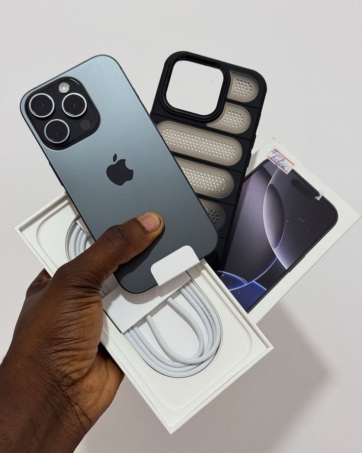 iPhone de dernière génération avec un étui antichoc élégant et câble de charge inclus. Idéal pour rester connecté avec style et sécurité. Parfait pour la photographie et la productivité en déplacement.