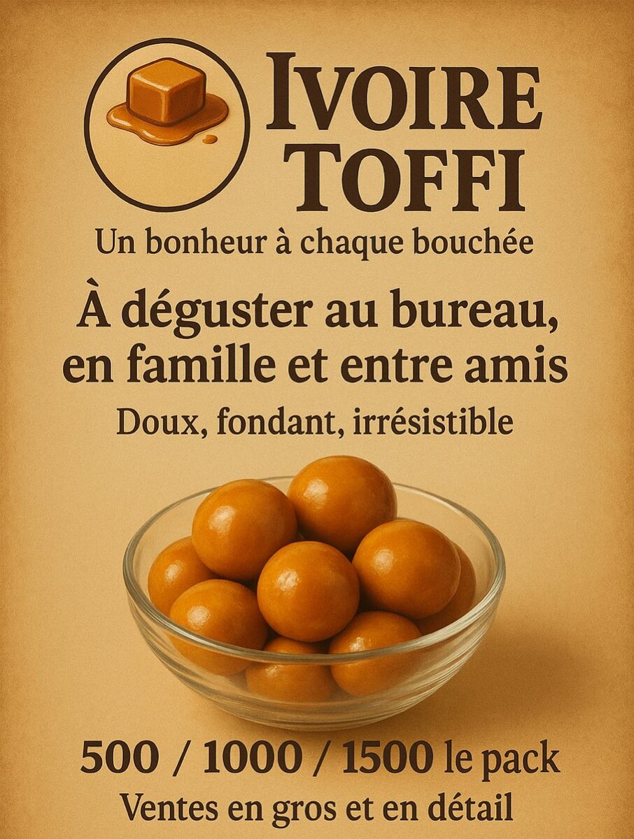 Découvrez les délices fondants d'Ivoire Toffi, parfaits pour une pause gourmande au bureau, en famille ou entre amis. Un plaisir sucré irrésistible à partager.