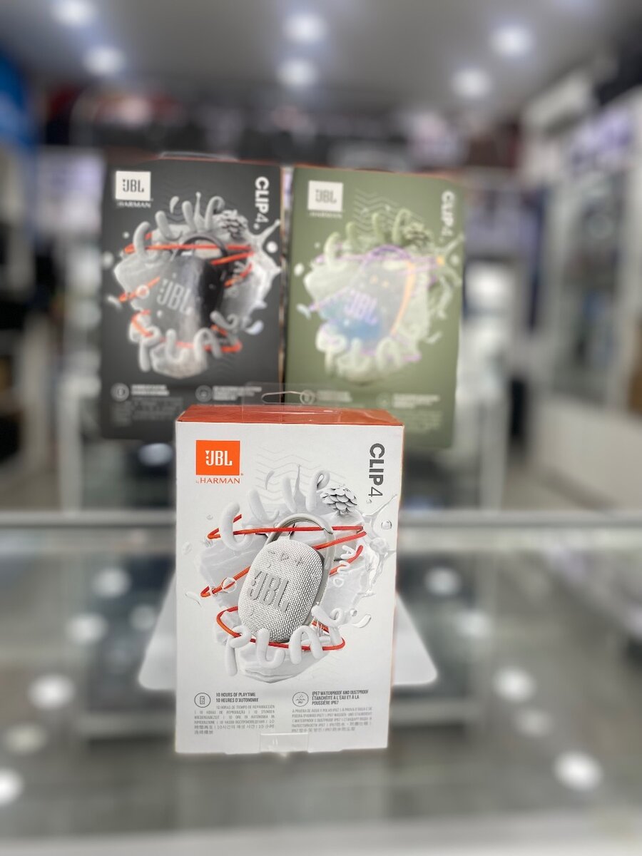 Clip and Play. Cool, portable, and waterproof. The vibrant fresh looking JBL Clip 4 delivers surprisingly rich JBL Original Pro Sound in a compact package. Receipt an warranty Location: Arcades shopping center shop number 22F