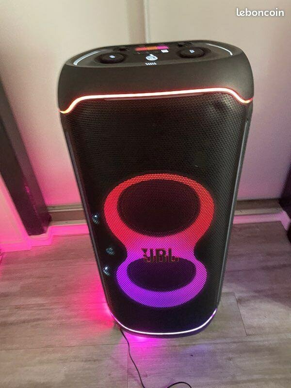 Profitez d'un son puissant avec ce haut-parleur Bluetooth JBL. Idéal pour des soirées entre amis ou des événements. Design moderne avec éclairage LED coloré. Connectivité Bluetooth facile et rapide.