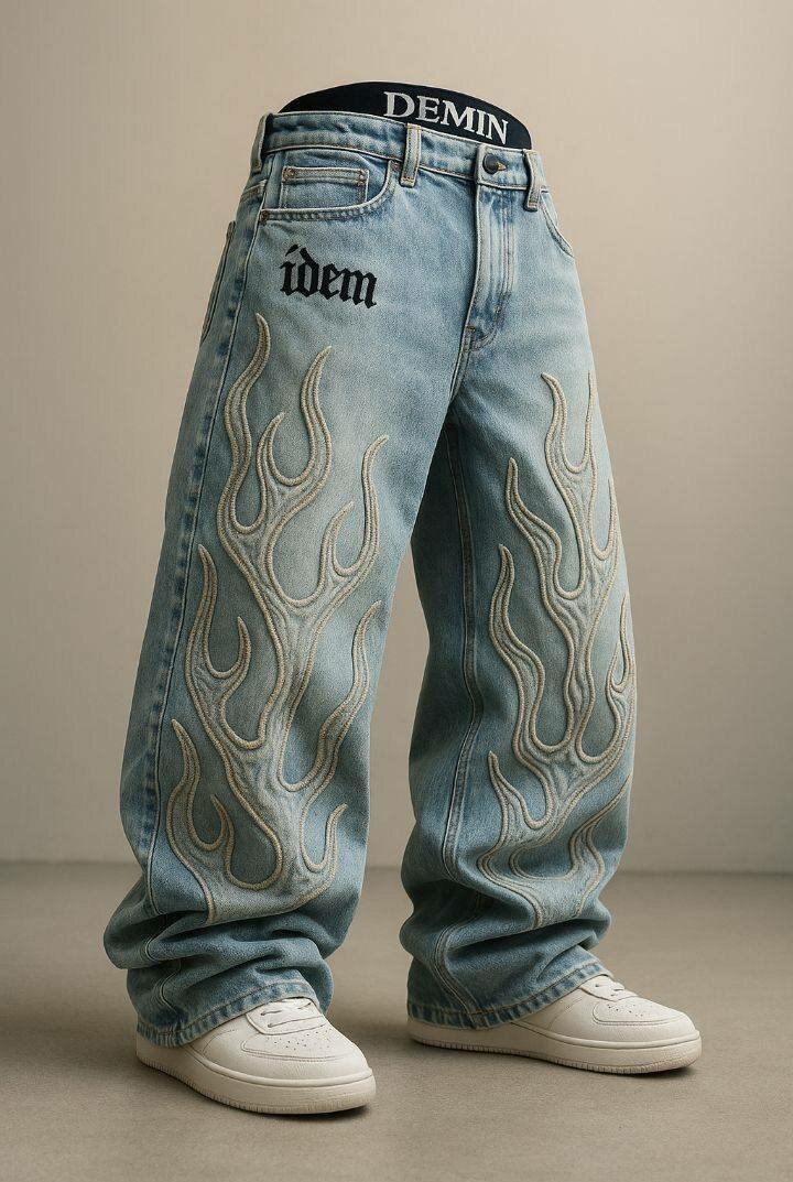 Découvrez ces jeans baggy avec broderie flamme, parfaits pour un look audacieux et tendance. Fabriqués en denim de haute qualité, ils offrent à la fois confort et style. Idéal pour les sorties décontractées ou les événements urbains, ce jean est un must-have pour votre garde-robe.