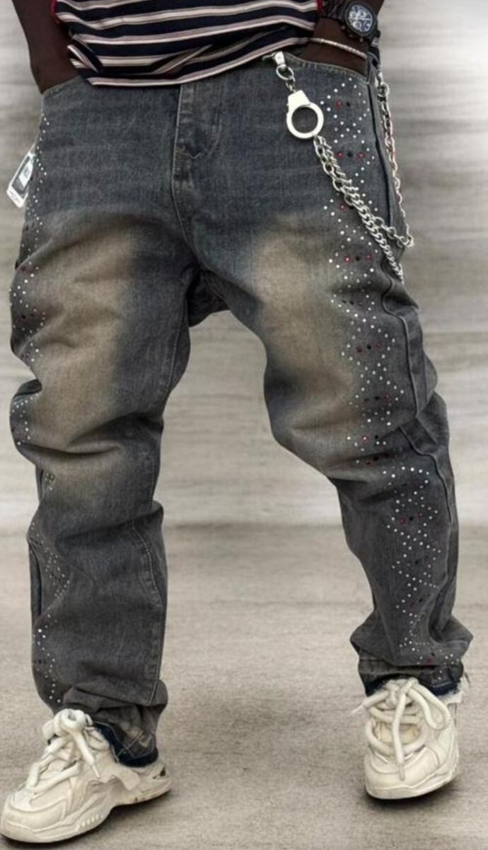 Découvrez ce jean baggy tendance, orné de chaînes élégantes et de détails scintillants. Parfait pour un style urbain audacieux, il allie confort et modernité. Idéal pour les sorties décontractées ou les soirées branchées. Sa coupe ample assure une grande liberté de mouvement.
