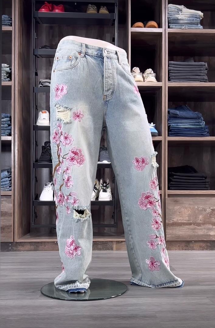 Adoptez un style unique avec ce jean bleu clair orné de magnifiques motifs floraux brodés. Parfait pour un look chic et décontracté, ce jean s'adapte facilement à toute occasion. Idéal pour une sortie entre amis ou un événement décontracté, il allie confort et style moderne. La broderie florale apporte une touche féminine et tendance à votre garde-robe. Que ce soit pour un dîner ou une promenade, ce jean sera votre allié mode incontournable.
