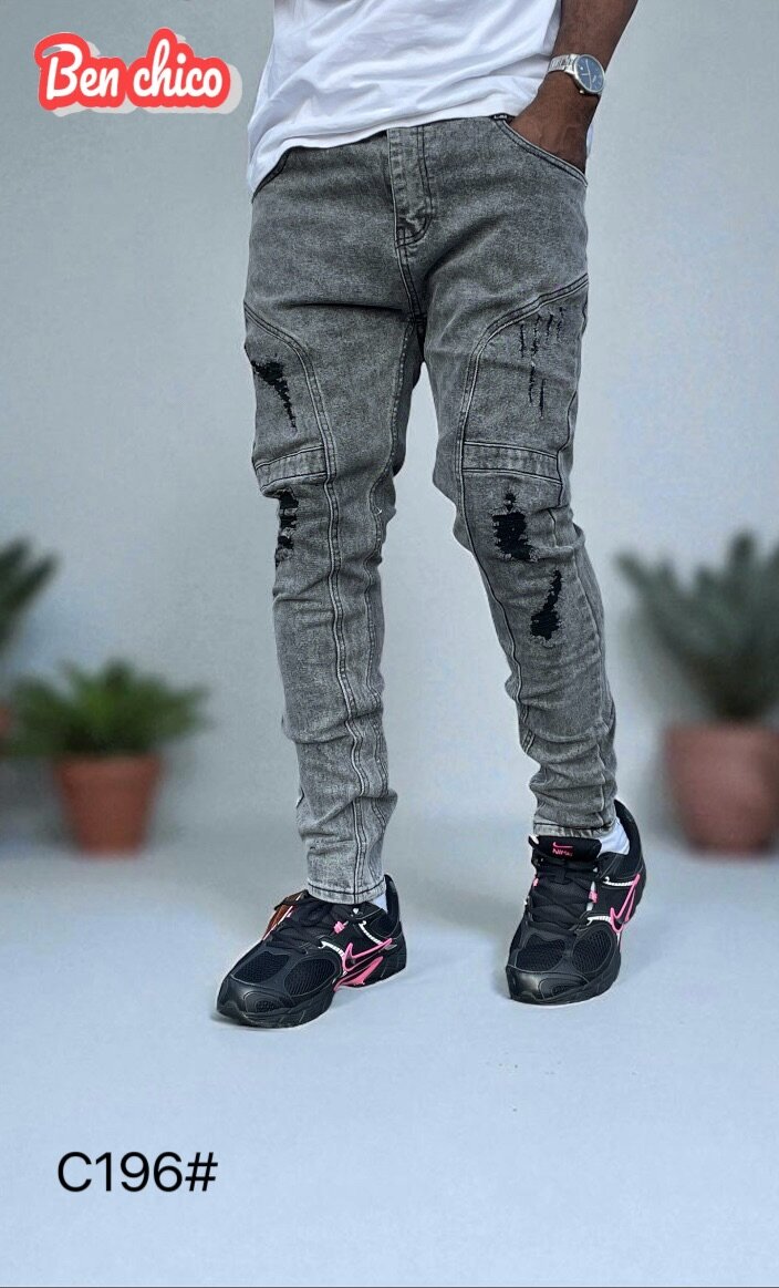Jean cargo déchiré pour homme, parfait pour un look décontracté et tendance. Confort et style assurés avec ses poches pratiques et son design moderne.