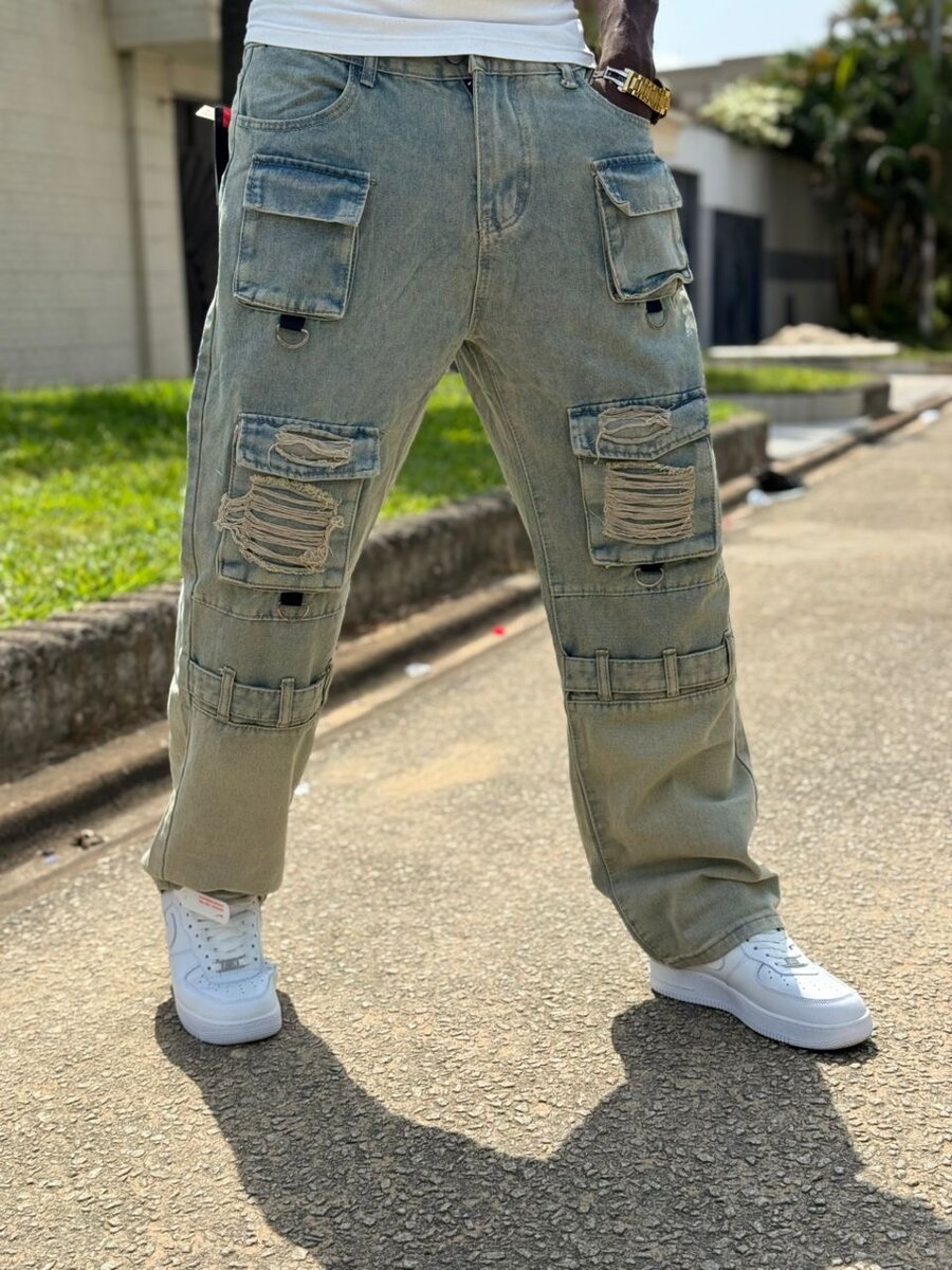 Découvrez ce jean cargo décontracté au design moderne et fonctionnel. Doté de multiples poches pratiques, il allie style urbain et confort. Parfait pour des sorties décontractées, il se marie facilement avec différents styles de chaussures et tops.