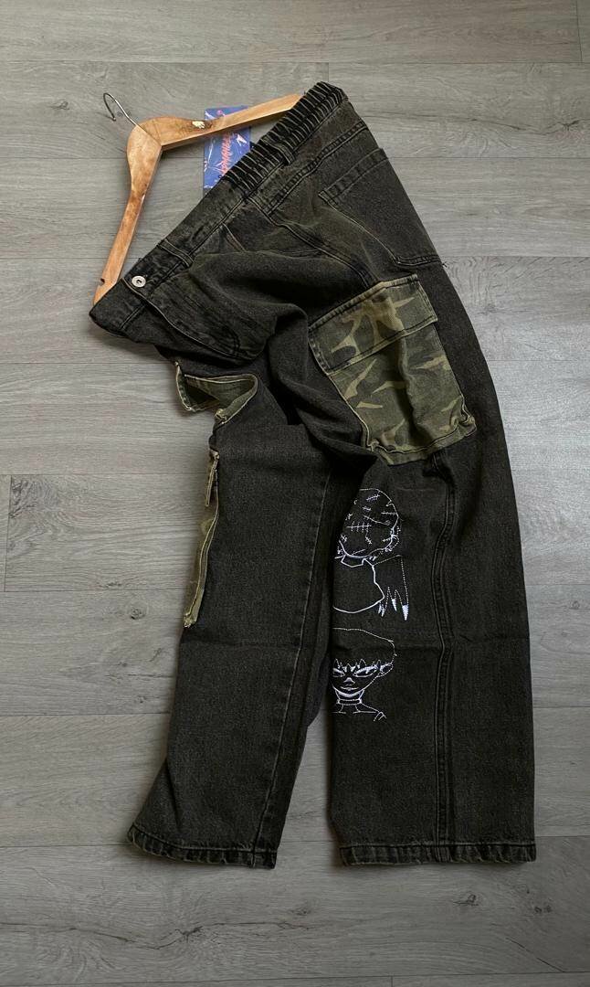 Jean cargo noir graffiti