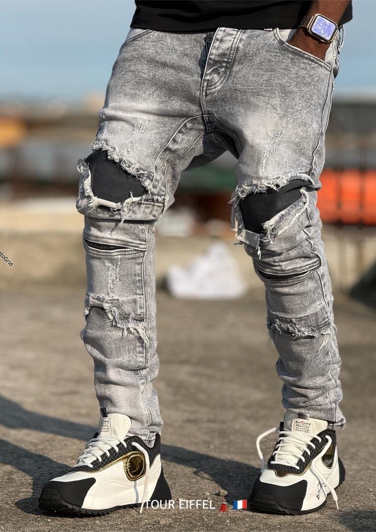 Adoptez un style audacieux avec ce jean déchiré pour homme. Conçu pour être à la mode, il se distingue par ses détails usés et son confort inégalé. Parfait pour une sortie décontractée ou pour affirmer votre personnalité streetwear. Associez-le à vos baskets préférées pour un look complet.