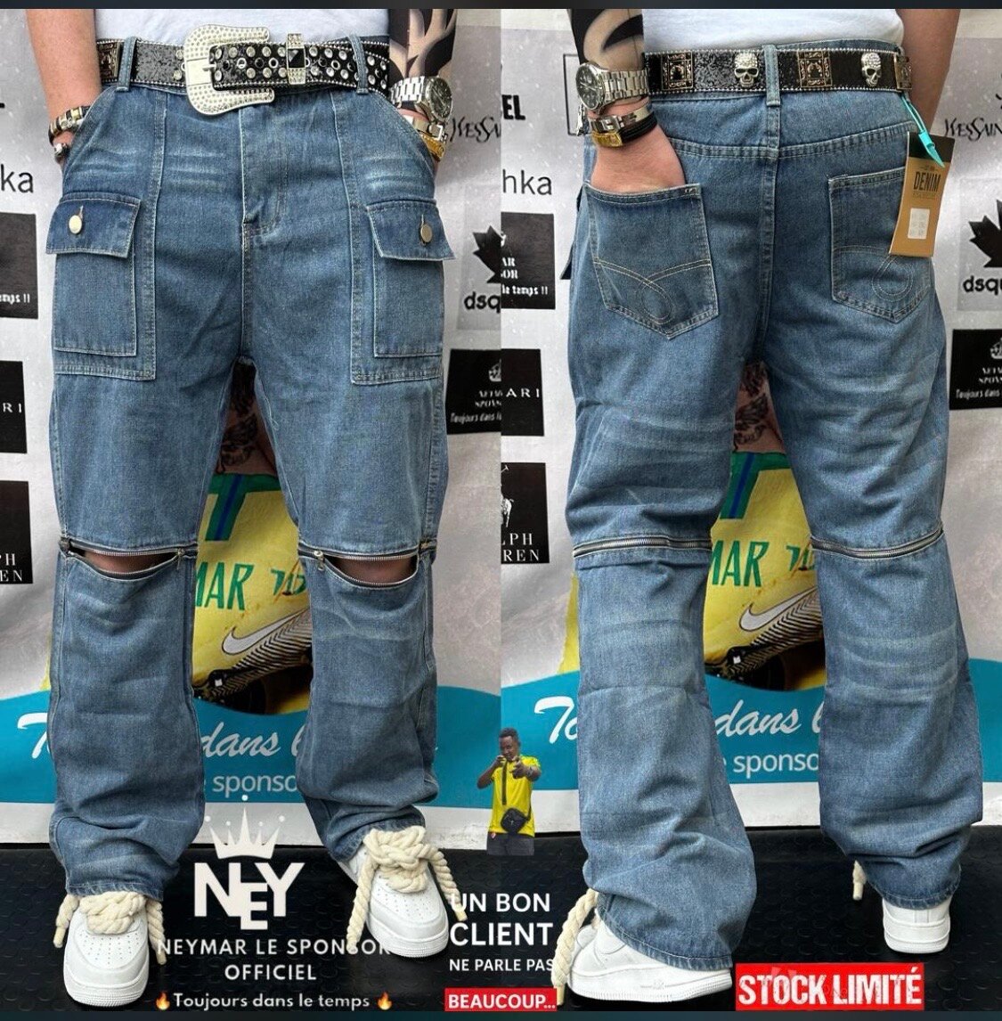 Optez pour un look urbain avec ce jean décontracté à poches multiples. Parfait pour un style tendance et pratique.