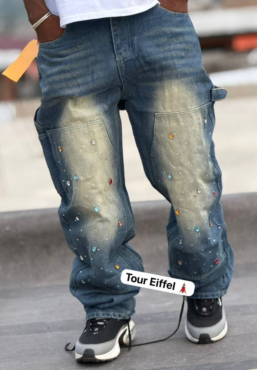 Découvrez ce jean décontracté orné de strass colorés qui apportent une touche de style unique à votre tenue. Idéal pour une sortie en ville ou un rendez-vous décontracté, ce jean allie confort et originalité. Fait de denim résistant avec des détails soignés, il s'adapte parfaitement à un style urbain moderne.
