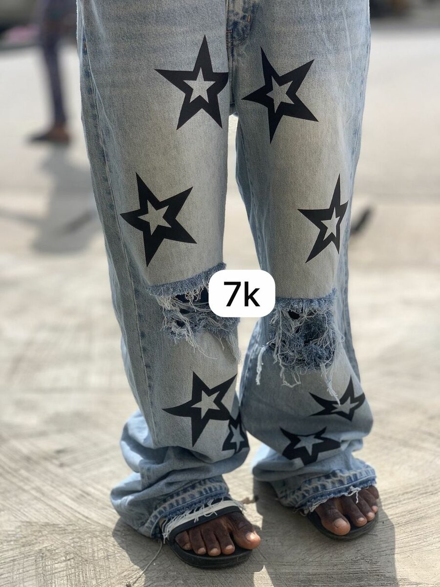 Jean décontracté et stylé avec motif d'étoiles. Parfait pour une allure urbaine et moderne. Idéal pour les sorties décontractées et les événements tendance.