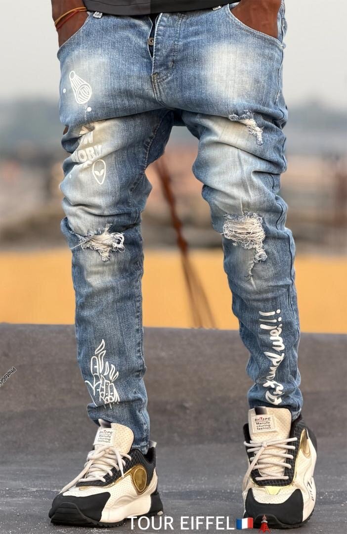 Adoptez un look unique avec ce jean décontracté orné de graffiti artistique. Idéal pour un style urbain et moderne, ce jean se distingue par ses détails déchirés et ses motifs créatifs. Parfait pour les sorties entre amis, il apporte une touche de personnalité à n'importe quelle tenue. Optez pour ce jean et affirmez votre style avec audace.